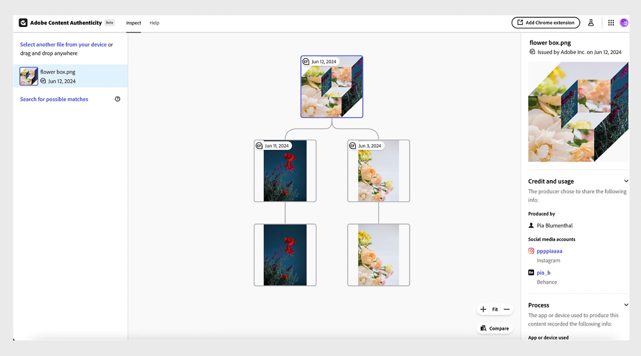 An example of a media site using the technology is Adobe Content Authenticity. Adobe’s Inspect tool allows you to drag any file or clip from any media to see if the content has content credentials and if generative AI was used in the process.